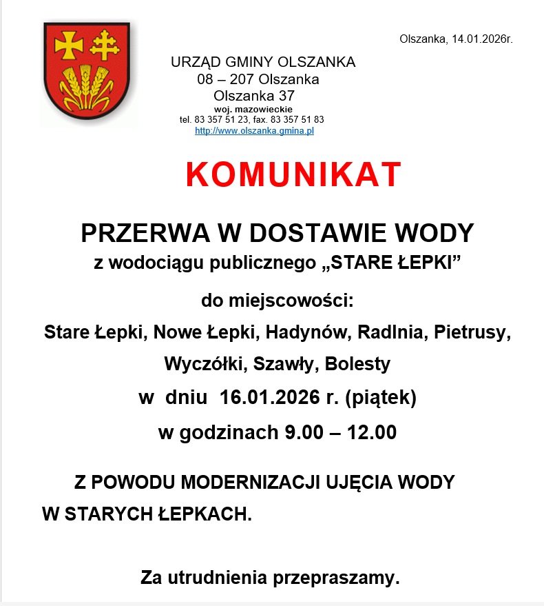 PRZERWA W DOSTAWIE WODY